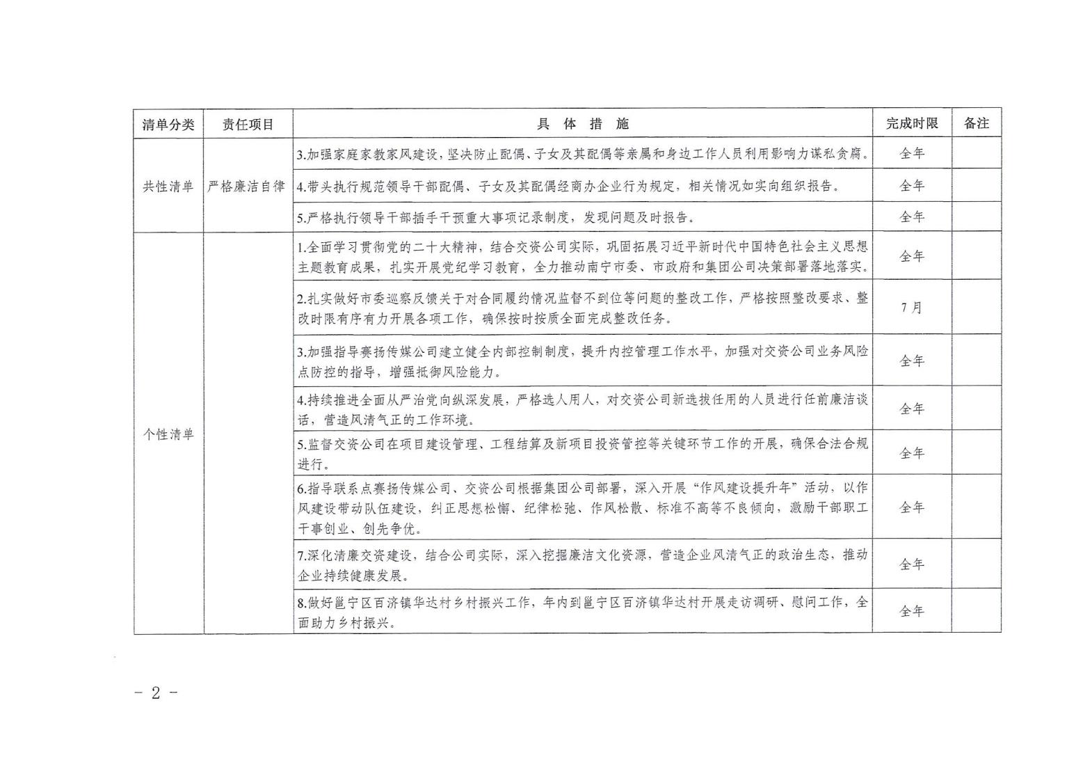領(lǐng)導(dǎo)班子其他成員2024年度黨風廉政建設(shè)“一崗雙責”清單(八)