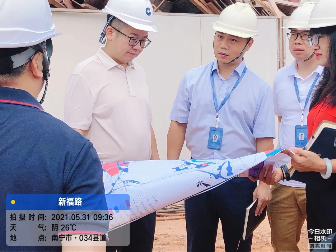 5月31日,邕寧區(qū)區(qū)長何翔一行到牛灣港產(chǎn)業(yè)園片區(qū)的橙山路、巧紅路、新巧路項(xiàng)目開展調(diào)研工作,交資公司董事長李發(fā)奕陪同調(diào)研。