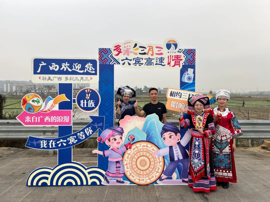 六賓收費總站則通過在賓陽南收費站設置“三月三”特色打卡點,吸引過往司乘紛紛駐足拍照打卡、發(fā)視頻稱贊,活動現(xiàn)場歡聲笑語不斷。