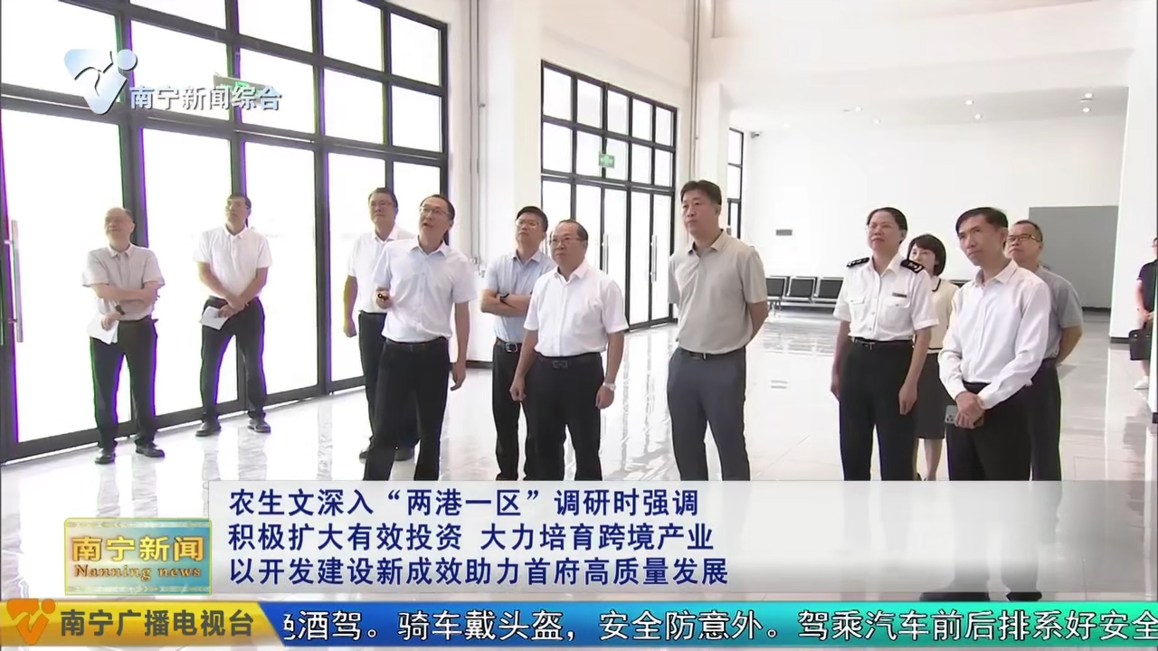 7月8日,自治區(qū)黨委常委、市委書記農(nóng)生文到“兩港一區(qū)”調(diào)研開發(fā)建設(shè)情況,強(qiáng)調(diào)要深入貫徹落實(shí)習(xí)近平總書記關(guān)于對(duì)外開放的重要論述和關(guān)于廣西工作論述的重要要求,進(jìn)一步樹牢開放發(fā)展理念,堅(jiān)持貿(mào)易先行、貿(mào)工結(jié)合、以貿(mào)促工,充分發(fā)揮空港、鐵路港、公路港協(xié)同聯(lián)動(dòng)和綜合保稅區(qū)政策優(yōu)勢(shì),積極擴(kuò)大有效投資,暢通跨境物流通道,大力培育跨境產(chǎn)業(yè),不斷開創(chuàng)“兩港一區(qū)”開發(fā)建設(shè)新局面,為加快建設(shè)面向東盟開放合作的國際化大都市注入強(qiáng)勁動(dòng)力。