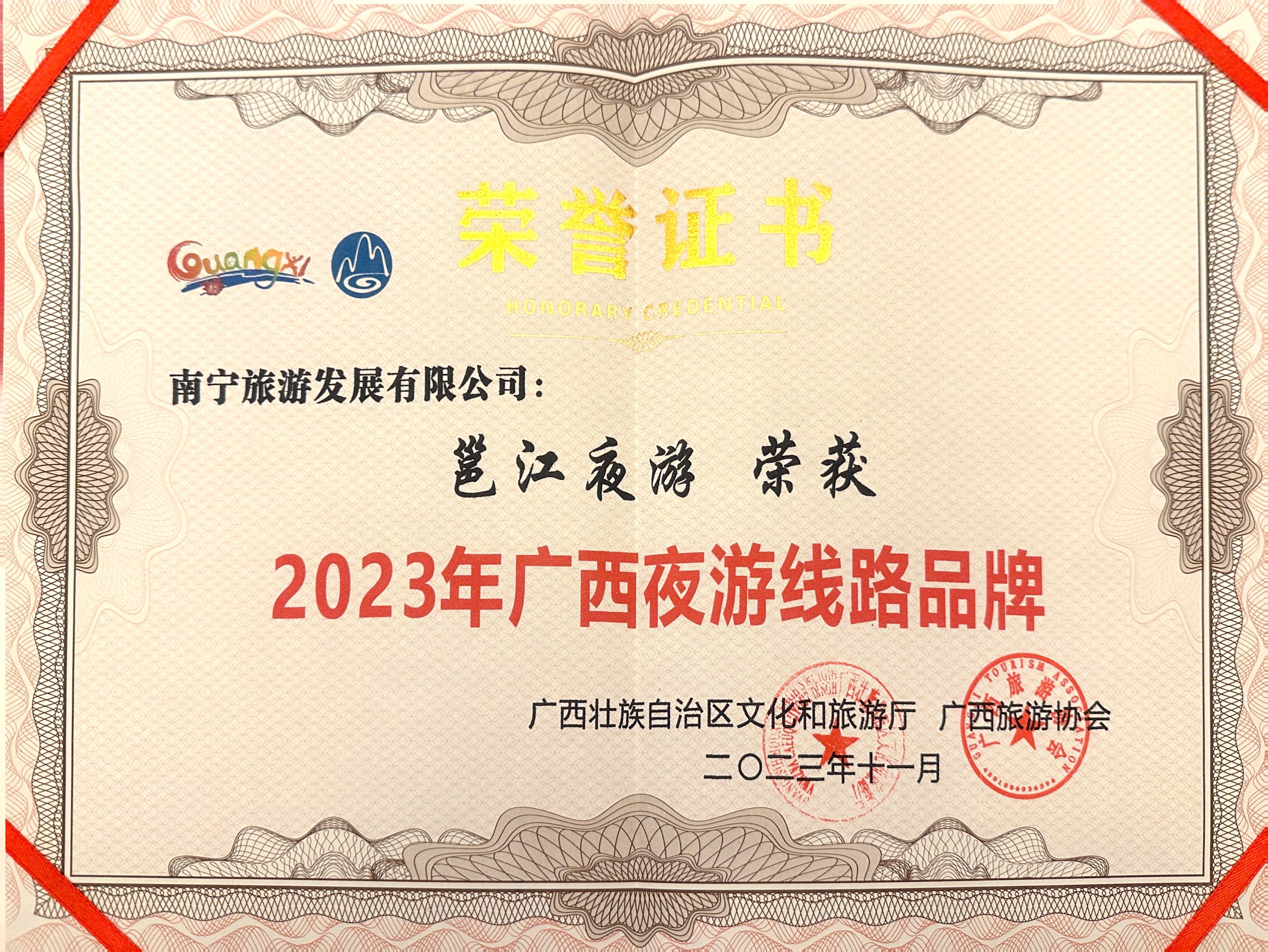 喜報(bào)!邕江夜游榮獲“2023年廣西夜游路線品牌”稱號(hào)